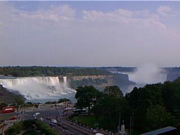 ホテルからの眺めです。左がアメリカ滝。右がカナダ滝。間にあるのがゴート島。