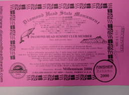 | ワイキキから見たダイアモンドヘッド | 登山口 | 日本語版登山証明書(クリックで拡大) |